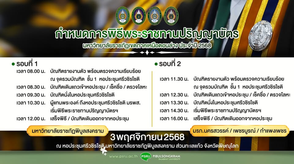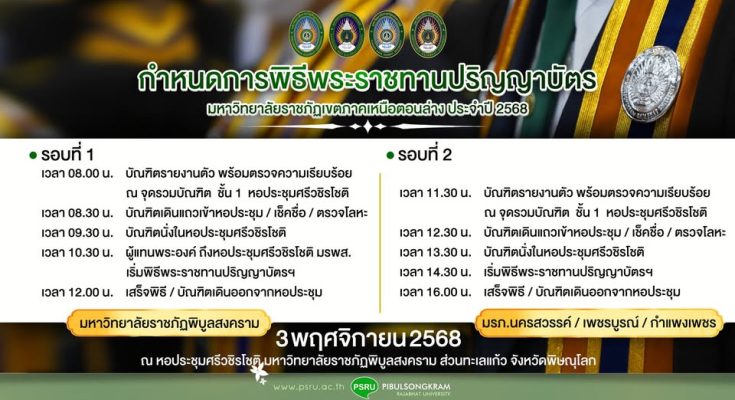 ข่าวกิจกรรม / ข่าวนักศึกษา / ข่าวประกาศ / ข่าวประชาสัมพันธ์ / ข่าวสำหรับอาจรย์กำหนดการพิธีพระราชทานปริญญาบัตร ประจำปี 2568 กำหนดการวันรับจริง สำหรับบัณฑิตมหาวิทยาลัยราชภัฏภาคเหนือตอนล่าง