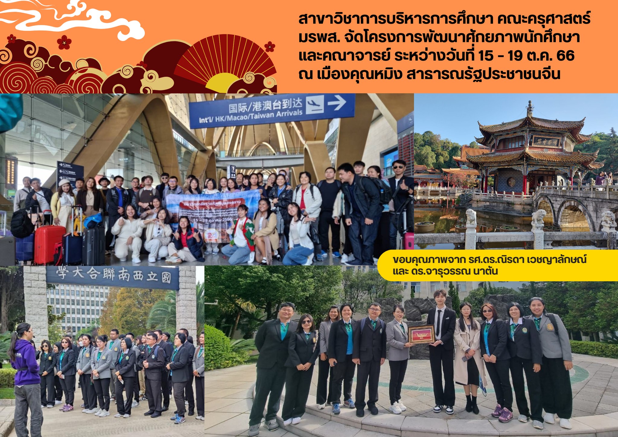สาขาวิชาการบริหารการศึกษาจัดโครงการพัฒนาศักยภาพนักศึกษาและคณาจารย์ ณ เมืองคุณหมิง